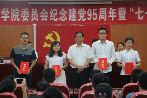 学院党委书记宋西德教授代表学院党委向全院党员致以节日的问候和崇高的敬意, 他回顾了我们党诞生的历史背景以及党领导的革命、建设、改革事业发展的历程,特别是党的十八大以来,党中央全面分析国内外环境的深刻变化,正确把握我国基本国情和国内、国际大局,高瞻远瞩地作出了一系列战略决策和部署,为实现 “两个百年”目标绘就了蓝图。他指出这95年,一个看似简单的数字,书写的却是中国的辉煌,一个由共产党人书写的辉煌。